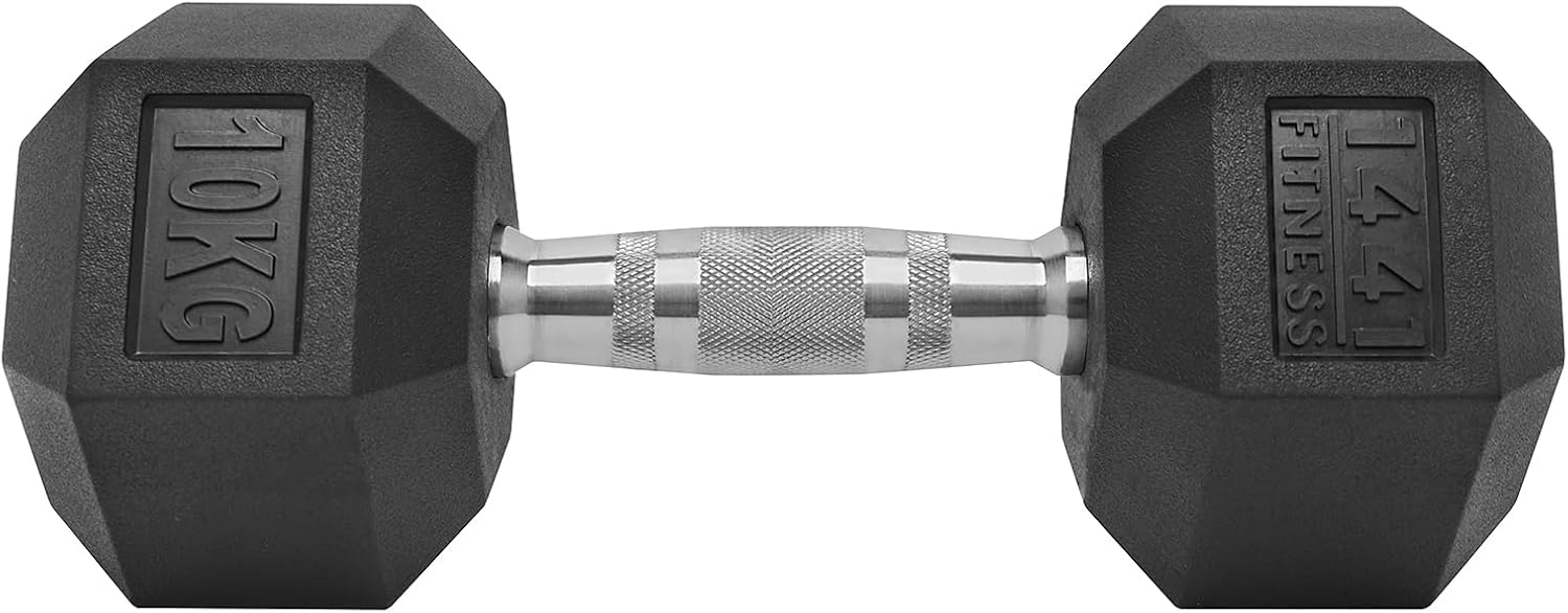 Hexagonal Rubber Design Prevents Rolling & Noise: The hex shape keeps each dumbbell in place, preventing rolling and reducing noise on drop. The high-quality rubber finish protects floors—great for dumbbell set for home gym or fitness studios.