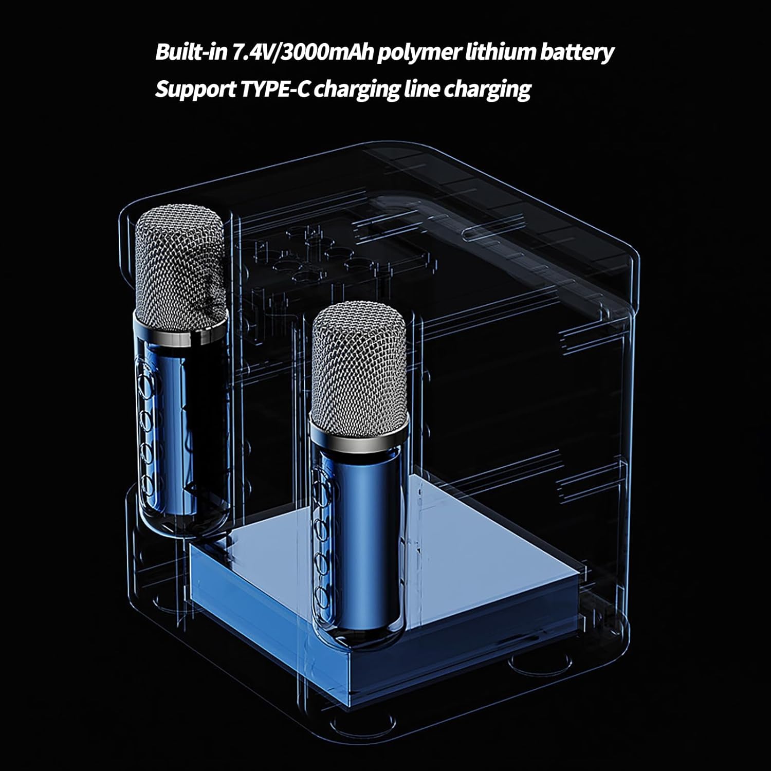 【High Capacity Battery】: This Karaoke speaker built-in a 3000mAh battery, which guarantees non-stop music playing up to 4-5 hours of playtime on medium volume, and a microphone built-in 1200mAh battery.