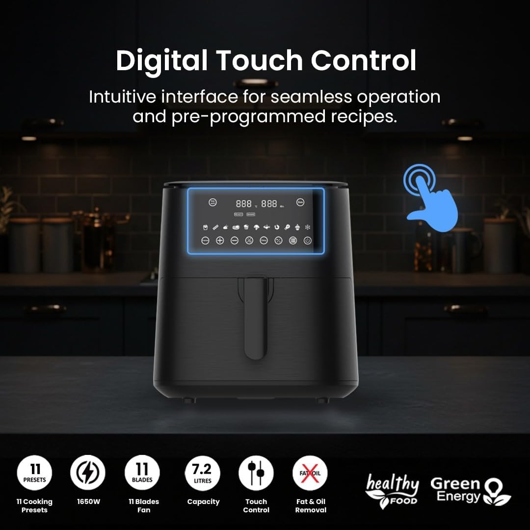 Touch Control & 11 Preset Options: Effortlessly cook fries, chicken, vegetables, and more with 11 preset cooking modes, making meal prep quick and easy.