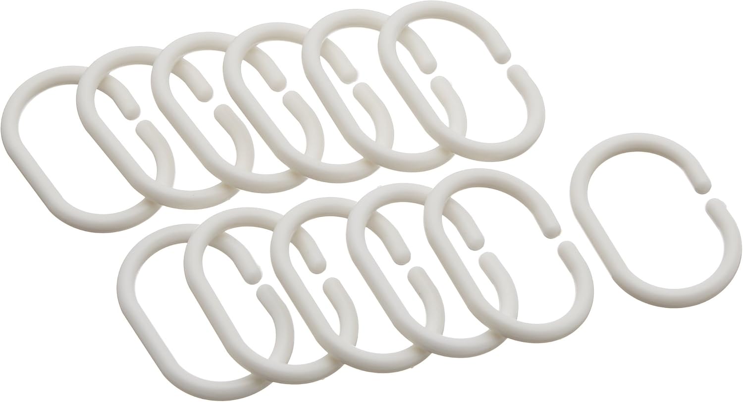 Dimensions: 72 x 182.8 cm for full shower stall coverage; includes 12 white plastic shower curtain hooks