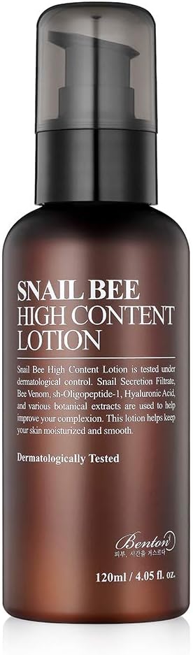 Benton Snail Bee High Content Lotion 120Ml (4.05 Fl. Oz.) – Contains Snail Secretion Filtrate & Bee Venom, Repair Damaged Skin, Reduces Acne Scars For Oily Skin, Firming Skin, Skin Smooth
