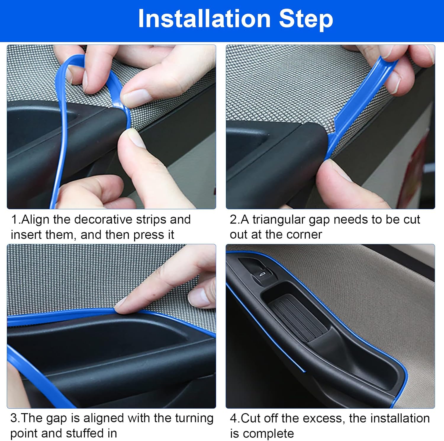 đăPackage IncludeăA roll of 5M / 16.4 ft car trim strips, and installation tool, easy to install, simply insert it into the gap in the car. Note: When encountering the corner, first cut the triangle with scissors on the strip, so that the installation is more firm and not easy to protrude.