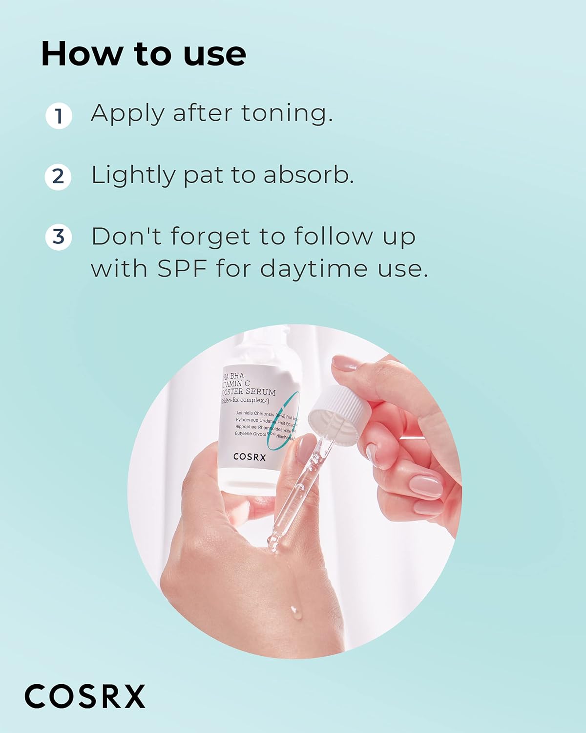 COSRX AHA BHA Vitamin C Booster Serum 1.01 fl. oz 30 ml, Face Serum, Brighten, Anti Aging, Plumping Skin, Natural, Fruit