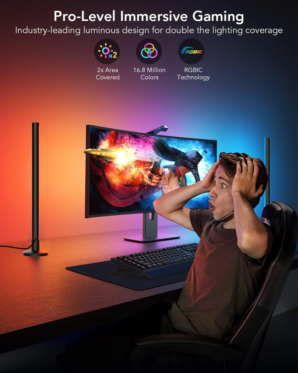 【Music Sync】With the built-in microphone, the smart light bars syncs smoothly with your music or ambient sound, the light bar can react to the beat of music, movie, and gaming audio for an immersive sound and light experience, perfect for party, movies, family concert, karaoke night or gaming, etc.