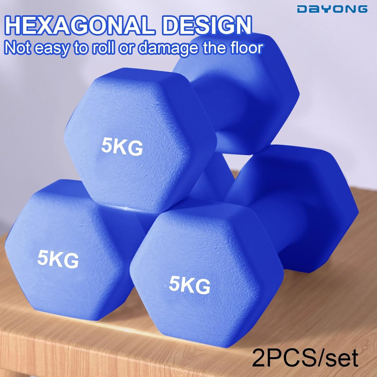 Simplicity and practicality: The two ends of the dumbbell have clear weight codes, making it easy for you to choose the correct weight. The set includes 2 dumbbells, weighing 5 kg and taking up less space, making it easy to store. Very suitable for home fitness, office, gym and other occasions.