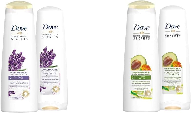 Dove Nourishing Secrets Shampoo and Conditioners Strengthens and Reduces Hair Fall, with Natural Extracts Avocado Oil to give 97 percent less Hair Breakage