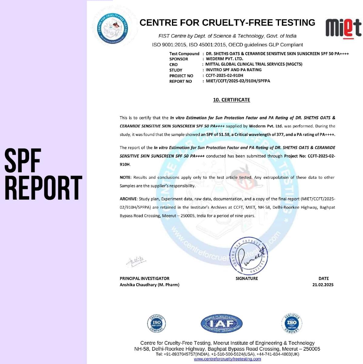 CALMING, SOOTHING EFFECT 1% Oats Extract in this sunscreen soothes irritation, reduces redness, and shields against environmental stressors, making it perfect for sensitive skin.