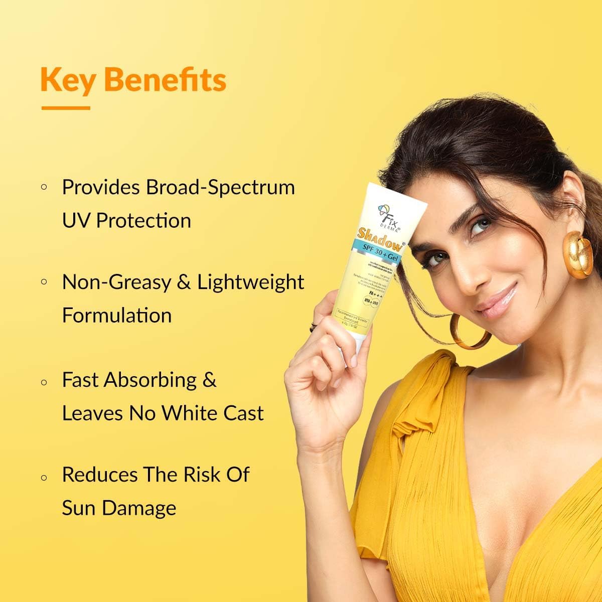 Fixderma Shadow SPF 30 Gel is a non-oily, non-greasy sunscreen formulation, which is ideal for oily and mixed type of skin. This light-weight gel spreads perfectly on the skin without leaving any whiteness to the skin. It offers a protection against both UVA & UVB rays. Chemical UV absorbers are generally oily in nature which makes the formulation tacky and greasy. When it comes to oily skin, a broad-spectrum gel SPF is ideal. Fixderma Shadow SPF 30 Gel is an ideal formulation for oily and acne prone skin. A mixture of both physical and chemical based sun protectors, it gives a complete coverage without imparting any bad appearance to the skin. The formulation is completely non-comedogenic. To achieve a complete UVA &UVB coverage, a mixture of Physical blockers and chemicals absorbers is the ideal sunscreen formulation. The best topical form which suits every skin type is a gel form. Fixderma Shadow SPF 30 Gel is a similar product designed to suit all skin types including oily, dry, combination and sensitive skin. It do not blocks the skin pores which makes it a good option for acne prone skin. It has Zinc oxide (micronized) work by scattering the sun’s rays, which prevents potentially damaging ultraviolet radiation from getting to the skin. The finely powdered mineral formula used in sunscreen does two things—reflect and absorb. A protective zinc oxide layer on top of the skin reflects and absorbs the harmful UVA (also considered to be carcinogenic) and UVB rays such that they don’t reach your skin.