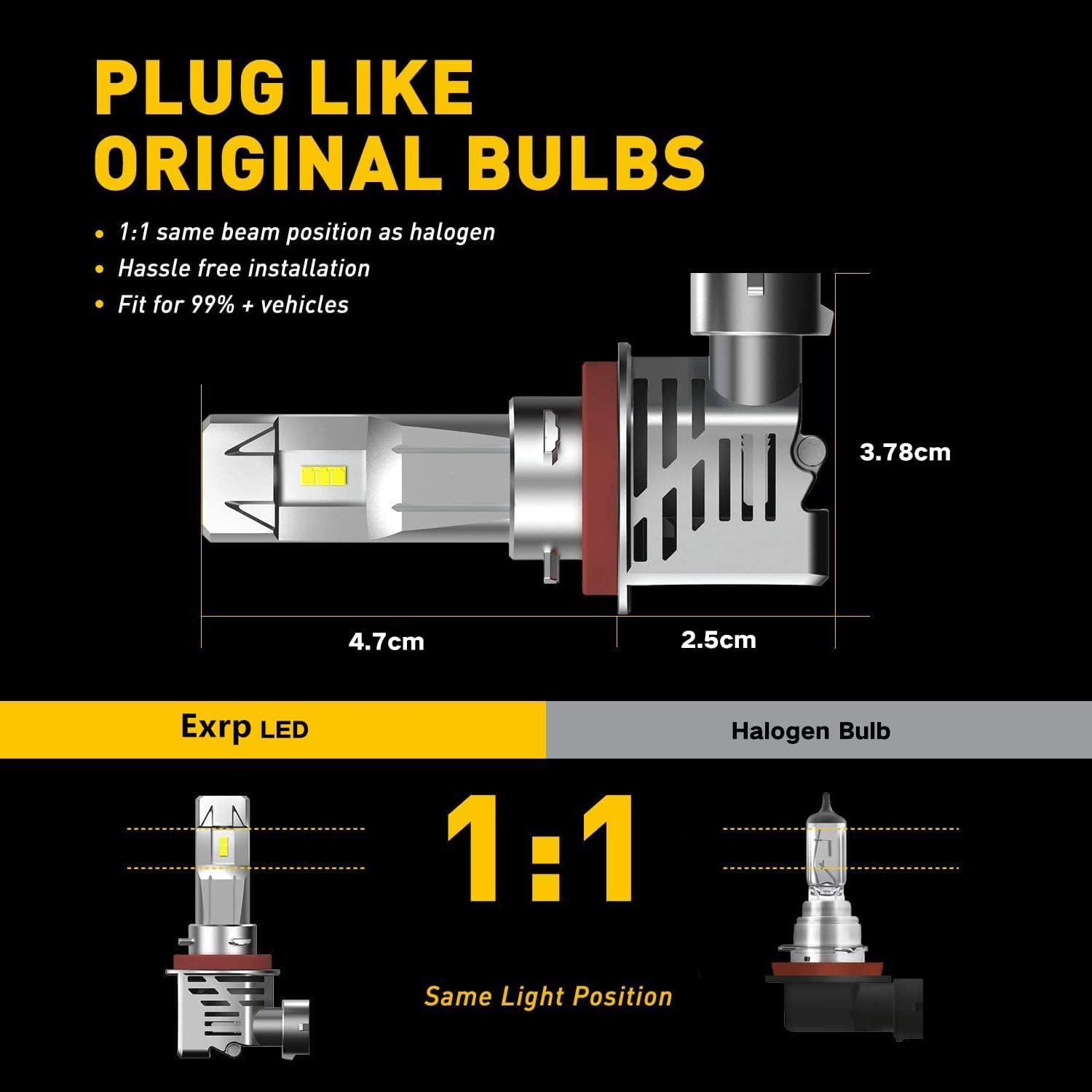Easy to install. Directly plugged wireless design, do not have external driver or connector, non-polarity socket, make the h11 led headlight plug and play like halogen bulbs