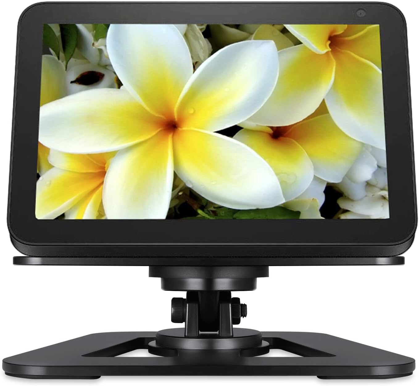The stand is specially designed for your echo show 8th generation. It realizes 360° horizontal rotation and longitudinal ce with 24° up and down adjustable to give you better viewing. The bottom pads could protect table surface from scratch and avoid slipping as well. This stand is constructed of premium aluminum alloy and can hold your show steady and stable. It is a perfect accessory for echo show.