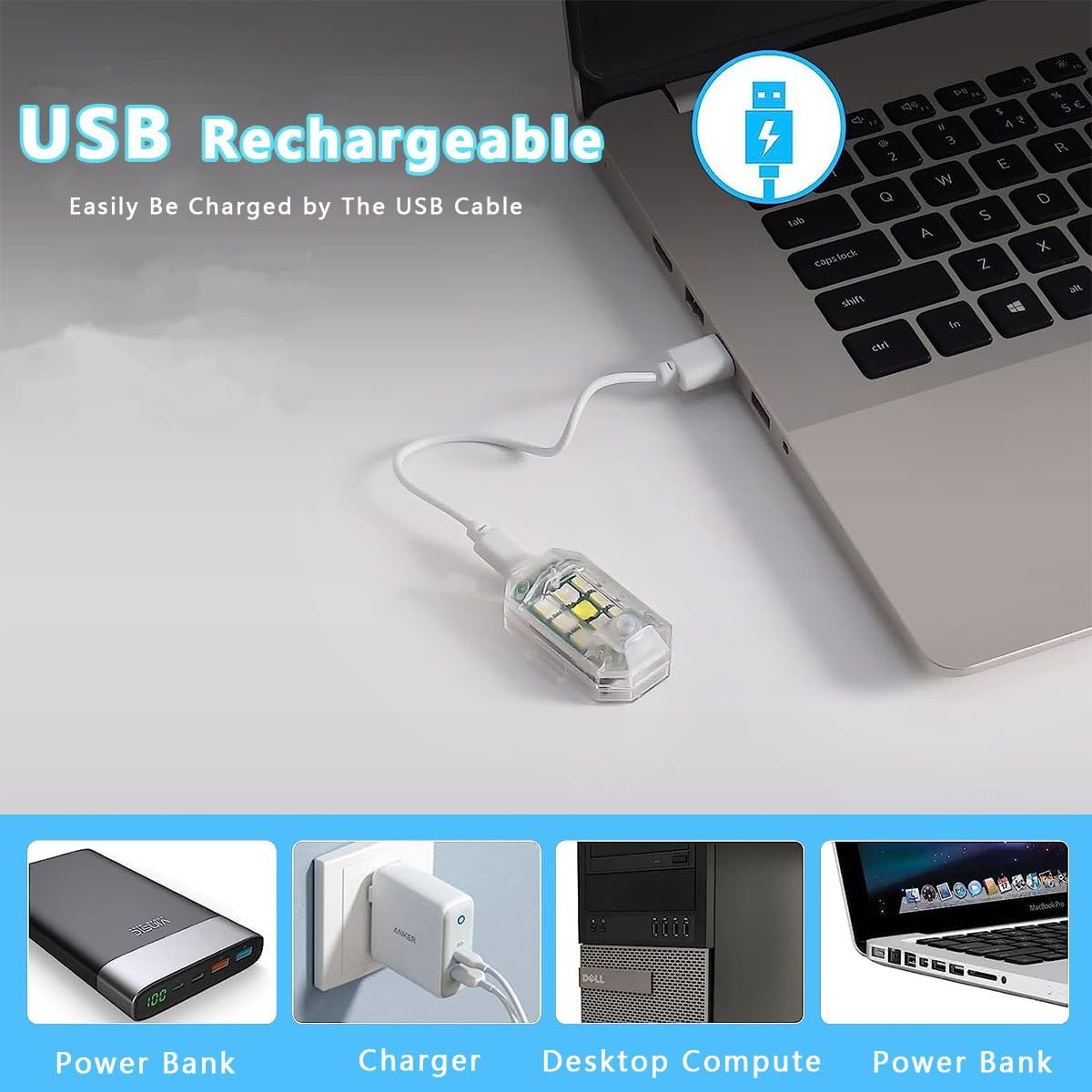 【7 Colors Several Modes and Energy Saving Design】The Motorcycle Night Riding Flashing Light for car has seven LED colors can be switched. white, red, green, blue, yellow, purple, sky blue 7 colors. Several modes: always-on mode, fast flashing, slow flashing, 7 color cycle, civil activation mode etc. In a static state, the drone strobe light will automatically turn off after 15 seconds. When it vibrates again, the USB Charging Anti-Collision Signal Light will automatically turn on.