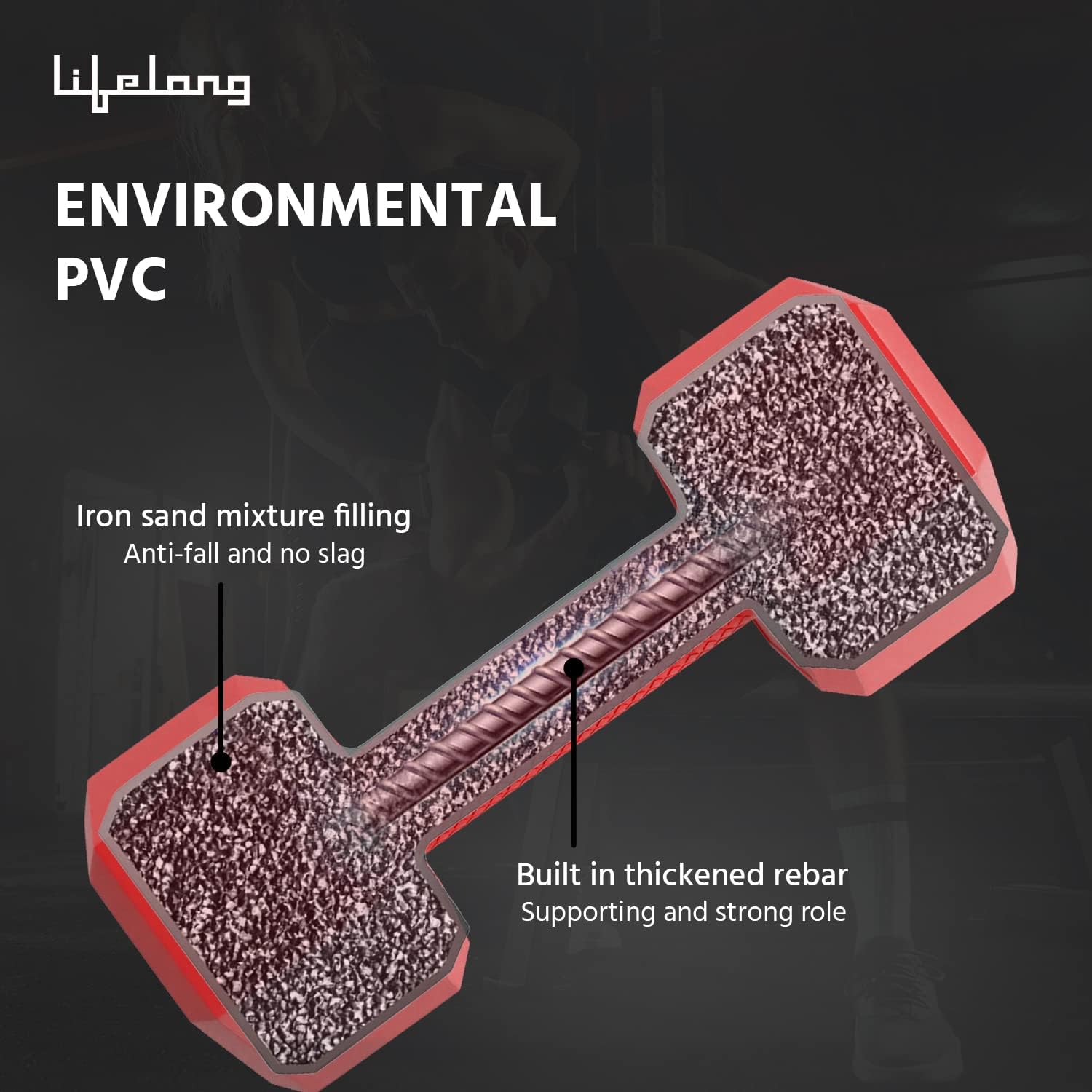 Take your resistance training workouts to the next level with the Lifelong PVC Hex Dumbbells. A set of 2 dumbbells, each dumbbell weighs 3 kg. With resistance training, you can tone muscles and build strength. You can also burn calories, increase energy levels, protect bone health, and more. Ideal for both beginners and advanced fitness enthusiasts, training with dumbbells allows you to select resistance training exercises based on their similarity to actual movements that occurs during sports. Choose the right amount of weight for your routine, preference, and number of repetitions.