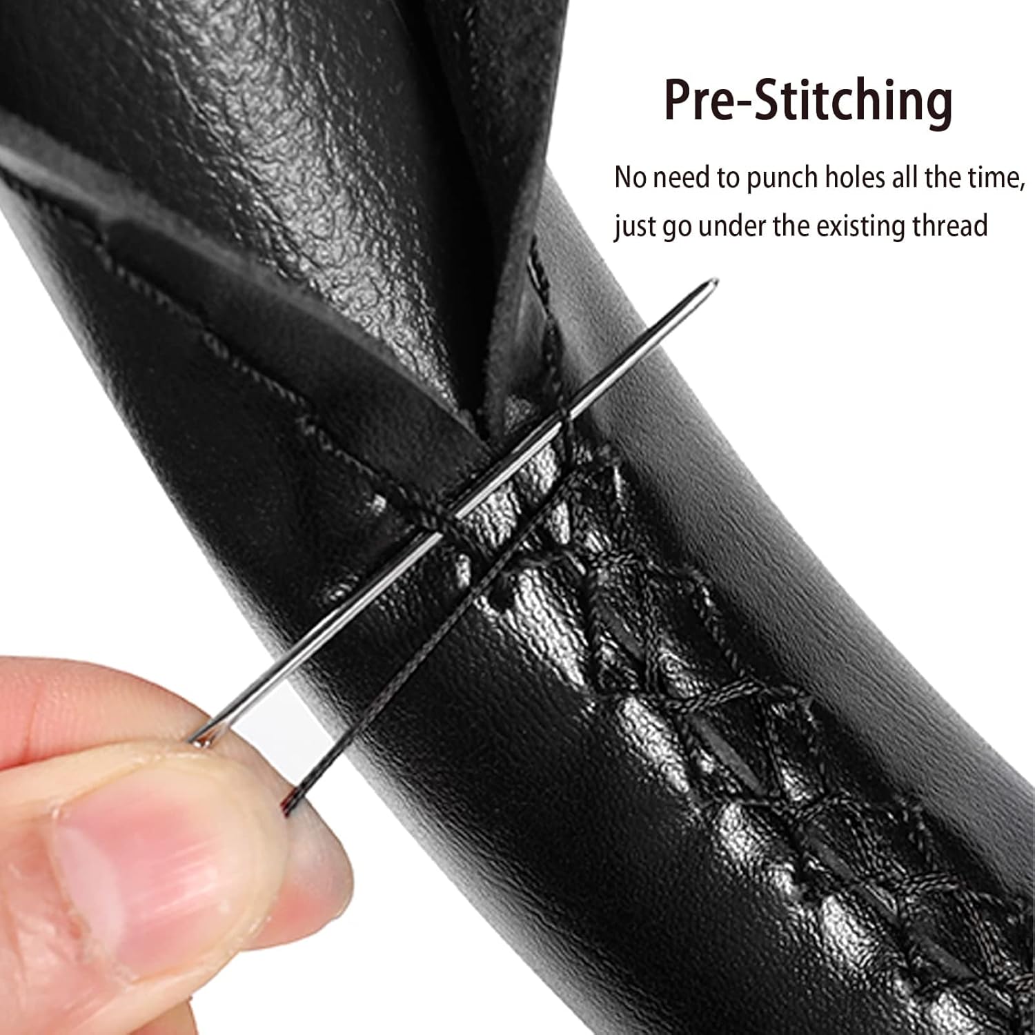 đăPre-StitchingăThanks to the pre-stitching design, there’s no need to punch holes again and again, just wrap the needle around the stitching that has already been sewn into the leather cover. And remember to pull the thread tightly during sewing to ensure the cover fits on your wheel feels like it is built into the steering wheel.