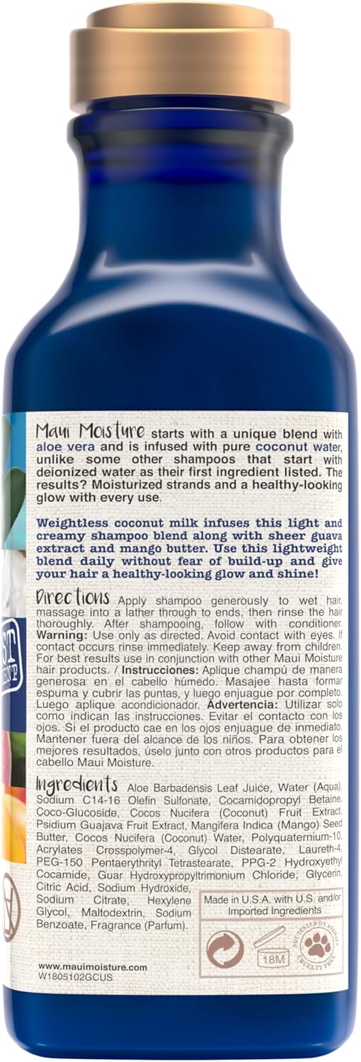 Maui Moisture Nourish & Moisture + Coconut Milk Shampoo To Hydrate And Detangle Curly Hair, Lightweight Daily Moisturizing Shampoo, Vegan, Silicone & Paraben-Free, 13 Fl Oz