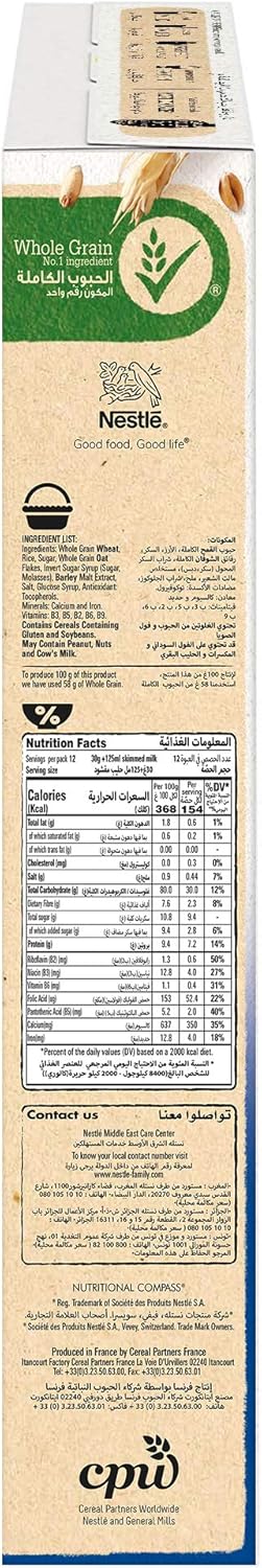 Enjoy the irresistible goodness of Fitness flakes with that whole grain crunch that’s low in fat and rich in 7 vitamins and minerals a busy girl needs. For a tasty way to include more whole grains in your diet, start every morning with a whole grain breakfast cereal. Product Features: Dimensions: 27.5 x 19.2 x 5.1 cm Made with more whole grain, an important part of a balanced diet and 30% less sugar, low in fat (0.6g per serving) Contains 7 vitamins and minerals, including calcium and iron Pour 40g of Fitness cereal in a bowl, add 125ml of skimmed milk and enjoy the great taste Ingredients: Cereal Grains (Whole Grain Wheat, Rice), Sugar, Partially Inverted Brown Sugar Syrup, Barley Malt Extract, Salt,Glucose Syrup, Acidity regulator: Trisodium Phosphate,Antioxidant: Tocopherols. No artificial sweetners. Vitamins and Minerals: Niacin, Pantothenic Acid, Riboflavin (B2), Vitamin B6,Folic Acid (Folacin), Calcium Carbonate, Iron Free from pork products and their derivatives May contain traces of Milk, Almonds, Peanuts & other Nuts Contains cereals containing gluten. Good to know: Whole grain maintains all the nutrients of the grain such as Fiber, vitamins & minerals. Nutritional information on the pack