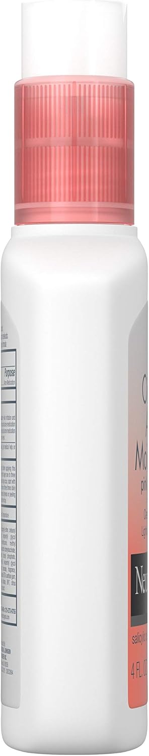 4-fluid ounce bottle of Neutrogena Oil-Free Acne Facial Moisturizer with a light pink grapefruit scent. It is formulated with 0.5% salicylic acid acne