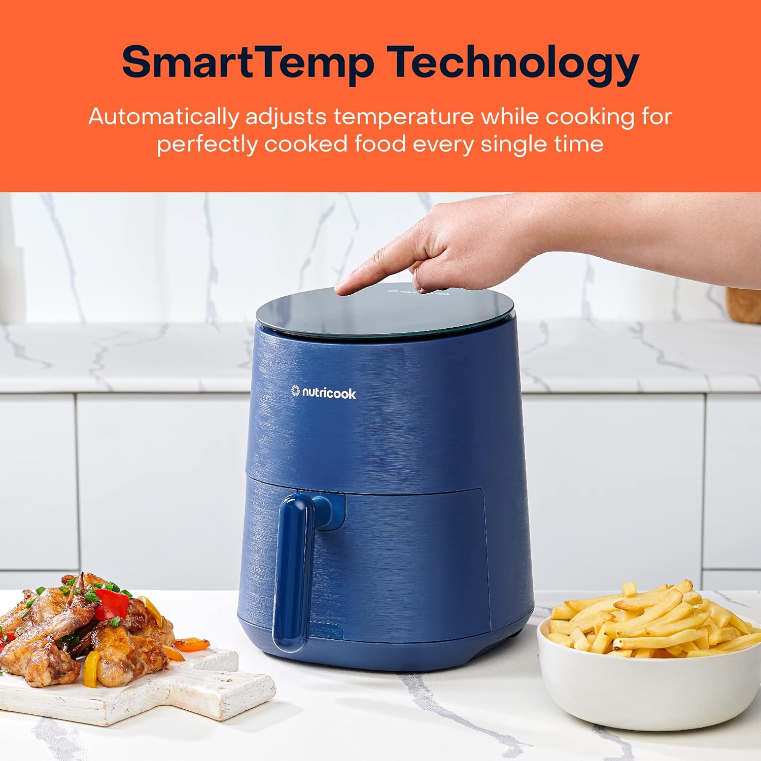 Nutricook Air Fryer Mini, 1500 Watts, Digital Display, Tempered Glass Control Panel, 8 Preset Programs with built-in Preheat function, 3.3 Liters, Blue, 2 Years limited Warranty