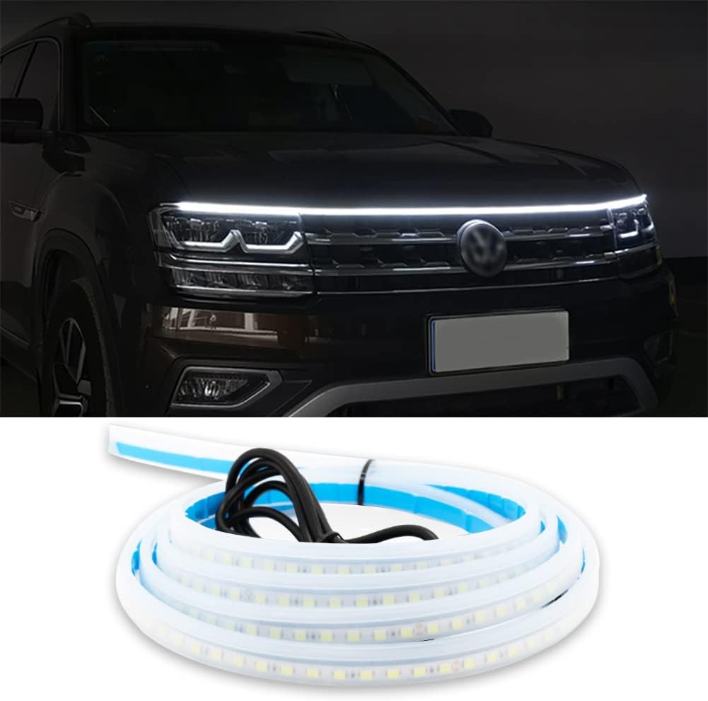 Car Hood Light Strip, 59 Inches Flexible Dynamic Led Hood Strip Lights 12V Exterior Daytime Running Light Strip for Cars Trucks SUVs, White Light