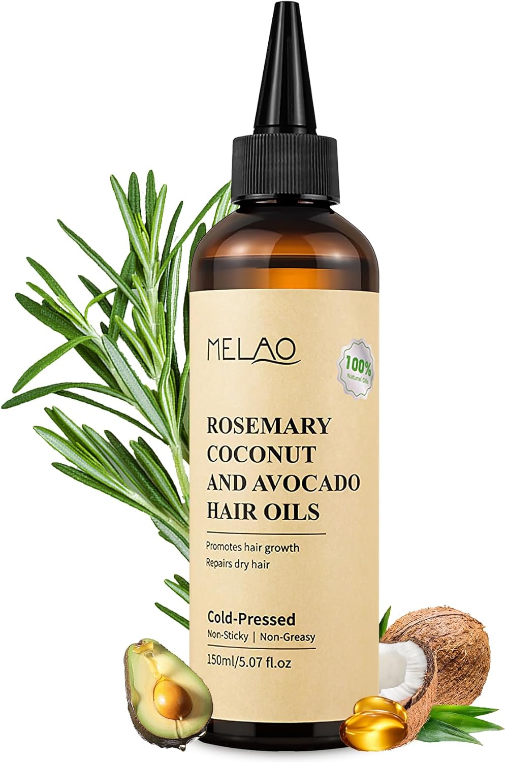 [100% Pure Rosemary Essential Oil] Made with 100% pure rosemary oil original, combined with natural coconut oil, avocado oil, biotin, and 20 organic nutrients. Cold-pressed to preserve the active components of rosemary essential oil, free from additives and preservatives, safe and gentle for all hair types.