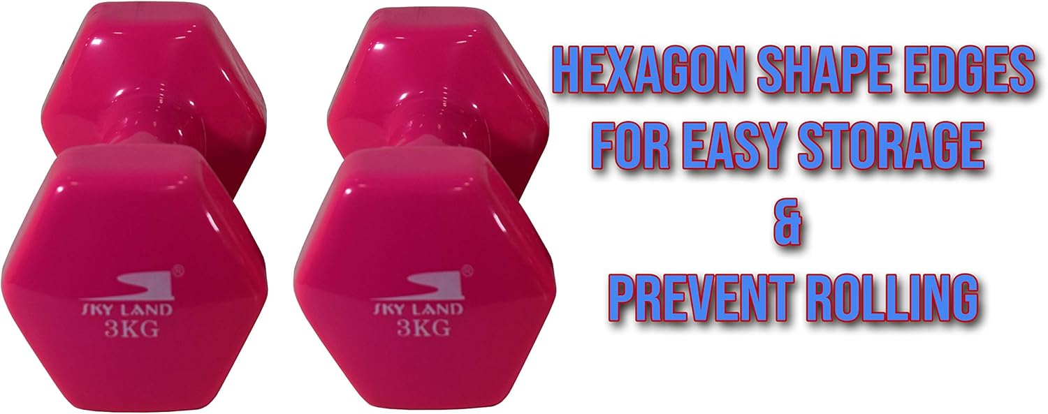 IDEAL FOR BEGINNERS & WOMEN: The SKY LAND (3 kg each) vinyl dumbbells are perfect for women and beginners, providing an effective way to start strength training at home and gradually build endurance.