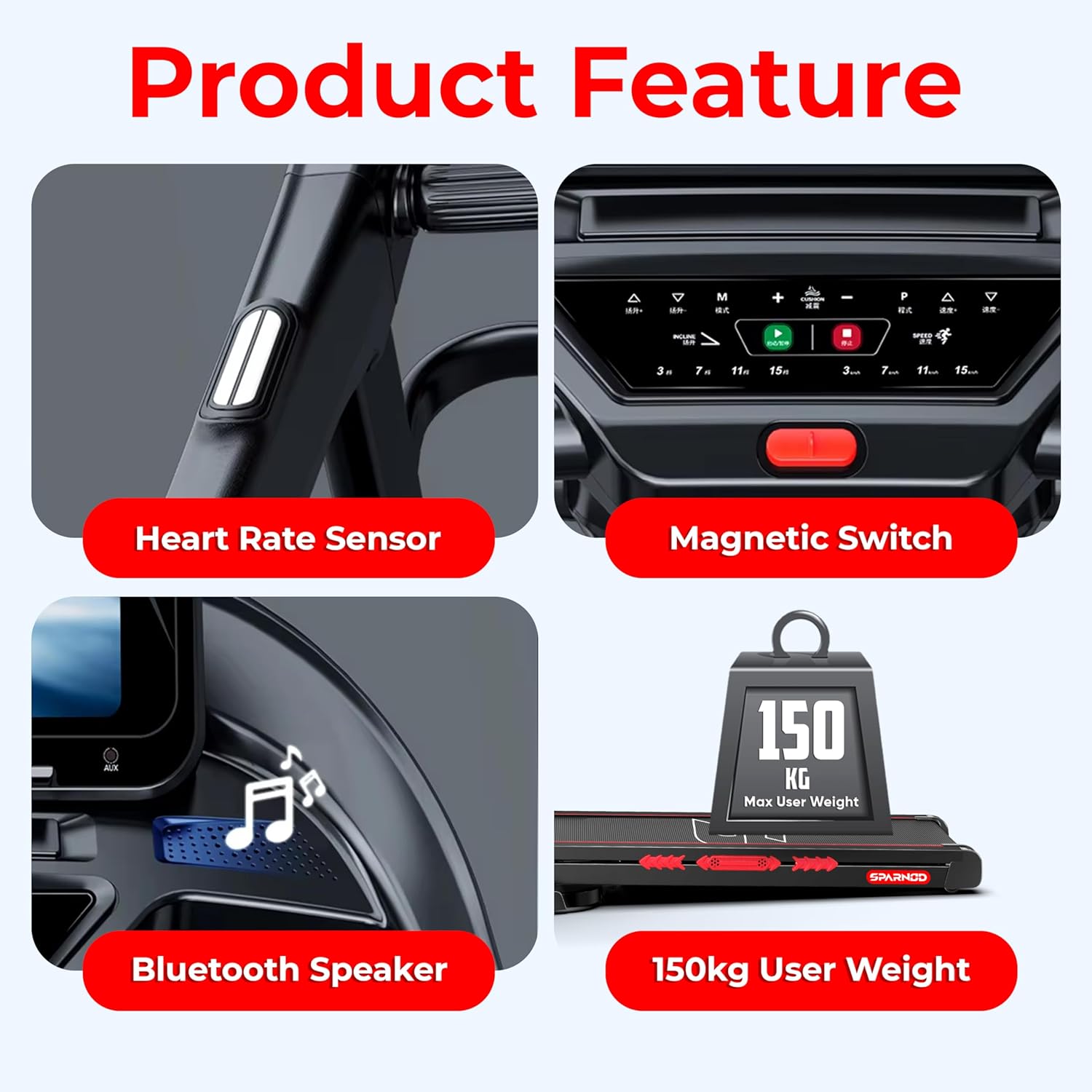✅ Durable Build & High Weight Capacity – Strong iron frame supports up to 150Kg, making it a reliable treadmill for long-term home use.