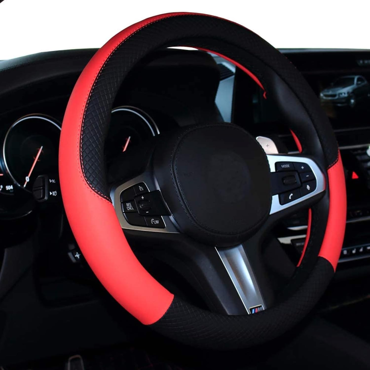 Sulfar Leather Car Steering Wheel Cover, 15in (Black & Bright Red)