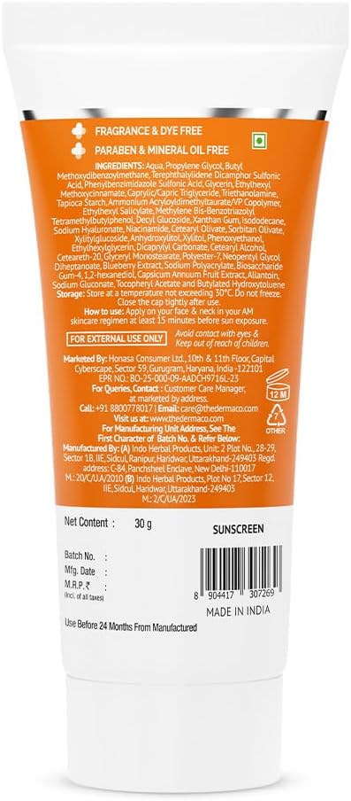 NON-GREASY & FRAGRANCE-FREE: Say goodbye to the greasy and oily finish of typical sunscreens. The Derma Co. 1% Hyaluronic Sunscreen Aqua Gel is fragrance-free and doesn’t clog your pores. The presence of 1% concentration of Hyaluronic Acid in this sunscreen makes it quick to absorb and provides intense hydration to the skin. Extremely lightweight in nature, the sunscreen dissolves like water, hence the name ‘Aqua Gel’.
