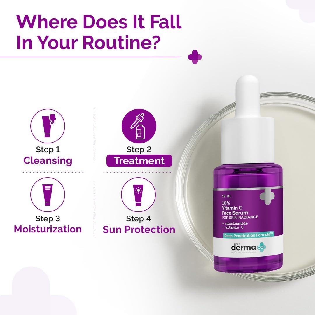 The Derma Co 10% Vitamin C Face Serum for Skin Radiance & Brightening | With 5% Niacinamide & Hyaluronic Acid | Minimizes Pores, Smoothens & Firms Skin | For All Skin Types, Men & Women – 10ml