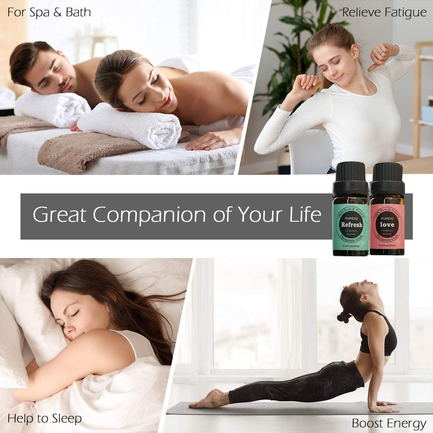 This essential oil set can be used with any essential oil diffuser for aromatherapy.