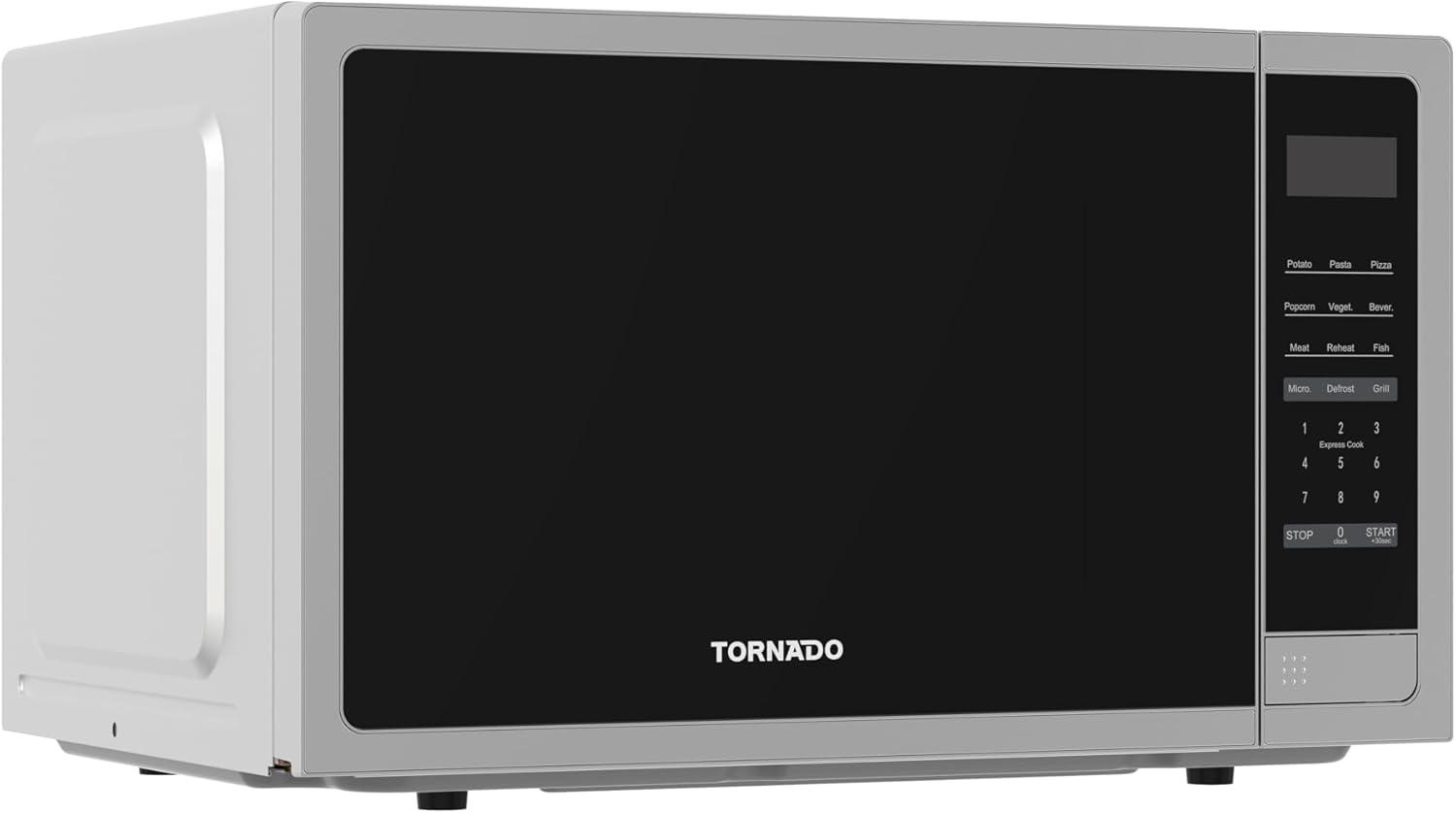 TORNADO Microwave Grill Microwave Capacity : 42 Liter Microwave output Power : 1000 Watt Microwave input Power : 1560 Watt Microwave Color : Silver 8 Auto Cooking Digital Control Number Of Power Levels : 10 Levels Timer Function Defrost Function :- Time Defrost Weight Defrost Timer Function Up to 99 Min Microwave Dimensions ( mm ) :- Width x Height x Depth : 456*326*264 Weight :- Net Weight : 16.8 Kg Gross Weight : 17.7 Kg Country Of Origin : China Microwave Warranty : 1 Year Full Free Warranty