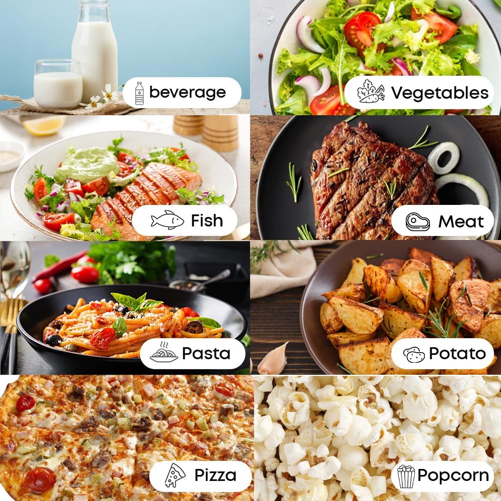 【AUTO PROGRAMS】 8 auto programs includes Reheat,Vegetable ,Fish ,Meat ,Pasta ,Potato ,Popcorn , Pizza