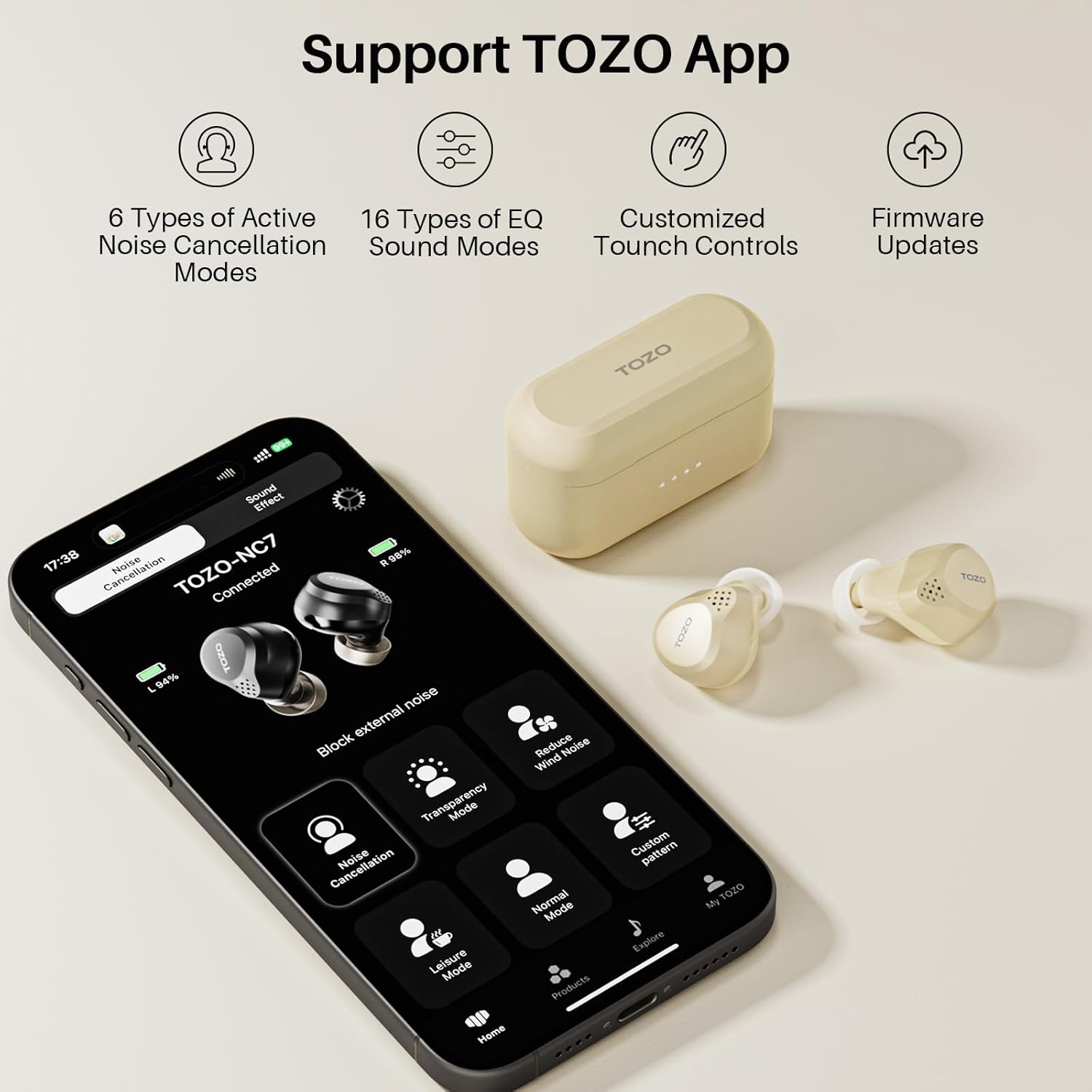 【Support TOZO APP】TOZO APP offers quick and easy access to Active Noise Cancellation mode and EQ mode switch, as well as the ability to save noise reduction intensity customized adjustment and EQ curve settings. It can be used to customize Gesture operations and perform OTA software updates on the product. Where you can become acquainted clearly with the Quick Guide and Product FAQ.