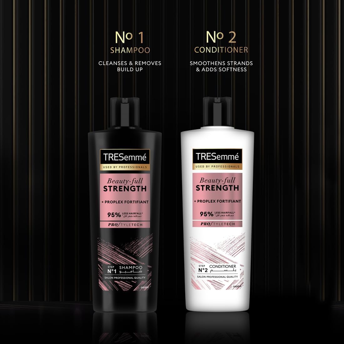 Maximize your results and make use of the full range of TRESemmé Strength & Fall Control shampoo and conditioner products.
