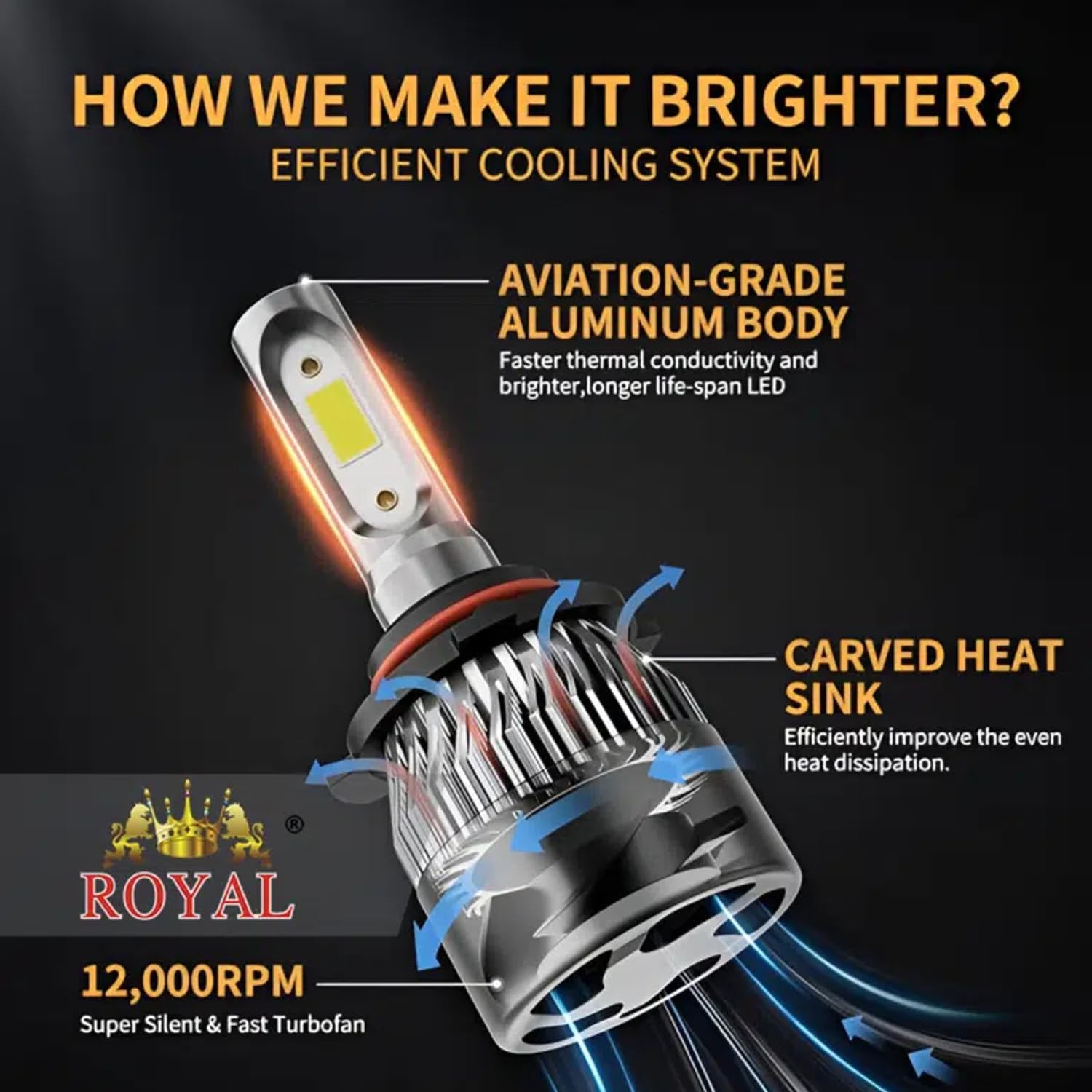3000w Car Headlights (LED) | Royal 80000LM Led Super Bright Headlight Winca/Royal Car Headlights Bulbs Pro Highlight Color Super Bright LED Car Headlight Bulbs, Low/High Beam Cool White LED Bulb. Quick and easy installation Waterproof, Dustproof, Rustproof [1 year official warranty]