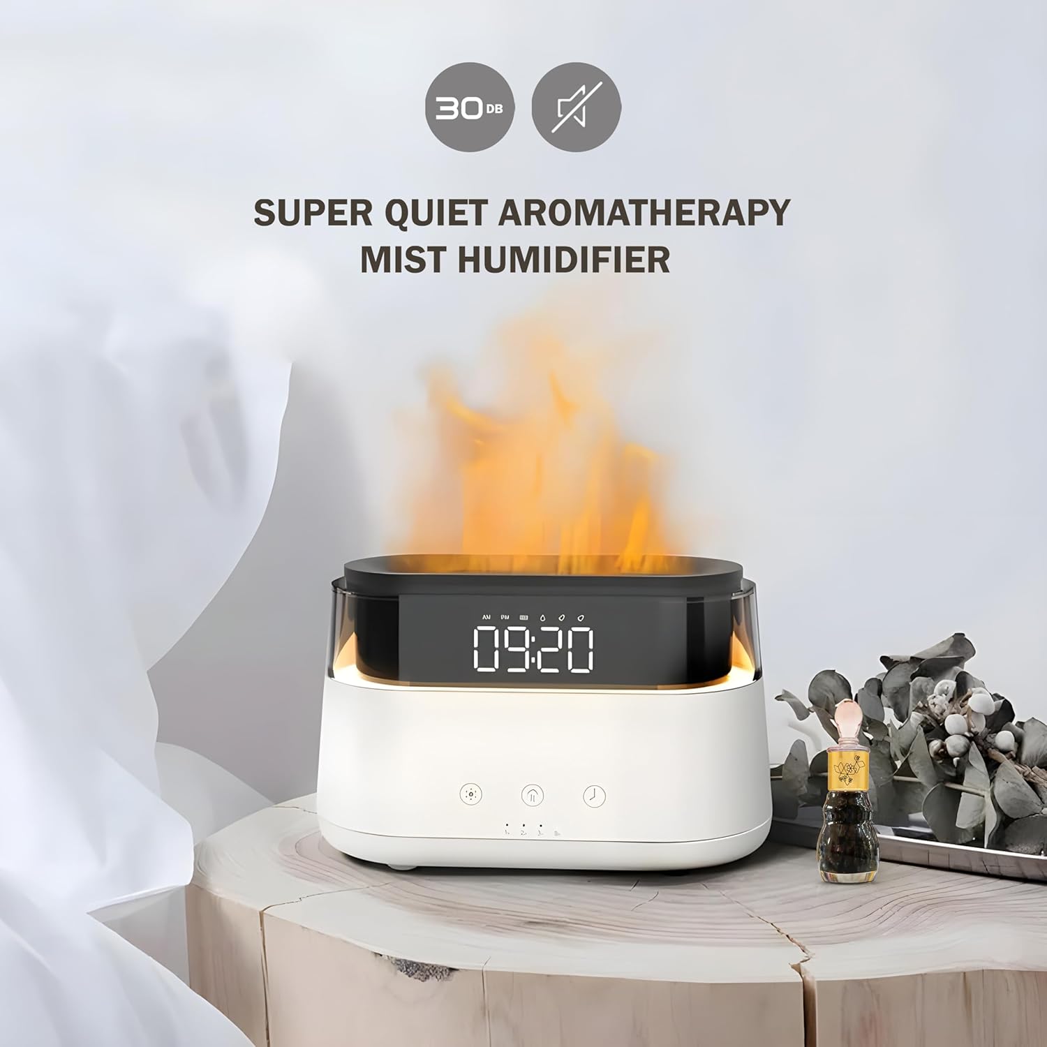 Combining a realistic flame effect, ultrasonic humidifier, digital alarm clock, and soothing RGB night light, it not only keeps the air fresh and moist but also creates a warm and relaxing atmosphere.
